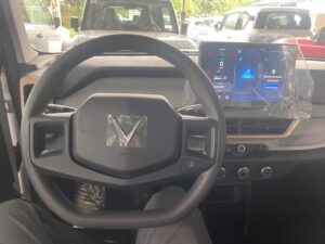 Chất liệu nội thất ghế theo như thông số công bố là chất liệu giả da. Đây là một trang bị rất ưu ái cho những mẫu xe thuộc phân khúc này. Một điểm hơi đáng tiếc trên vô lăng VinFast VF 3 không được trang bị phím bấm rảnh tay.